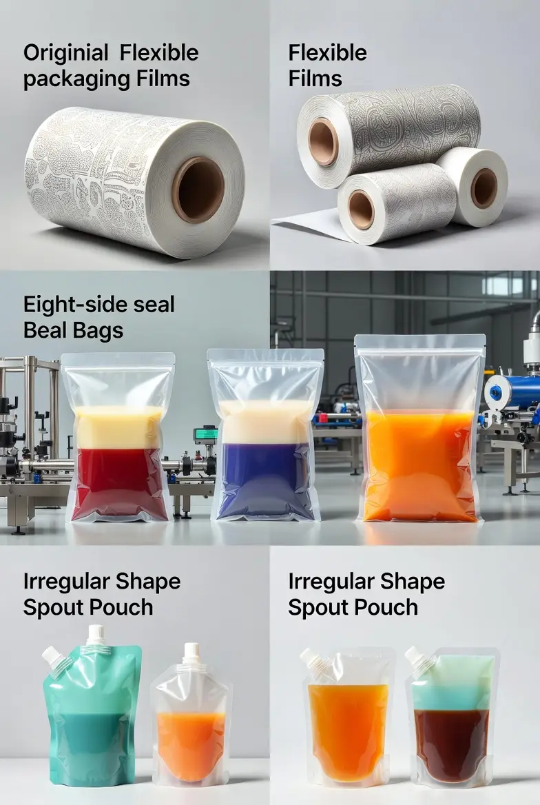 In the global packaging industry, flexibility, functionality and sustainability have become the core driving forces of innovation. Among numerous packaging solutions, Flexible Packaging Films, Eight Side Seal Bag and Irregular Shape Bag (Spout Pouch) stand out as three representative products, widely used in food, beverage, cosmetics, pharmaceuticals and other fields. They not only meet the basic needs of product protection and storage but also adapt to the diversified demands of consumers and the upgrading trend of the industry. This article will deeply explore the characteristics, production principles, application scenarios and market value of these three packaging forms, revealing their important role in the modern packaging system.