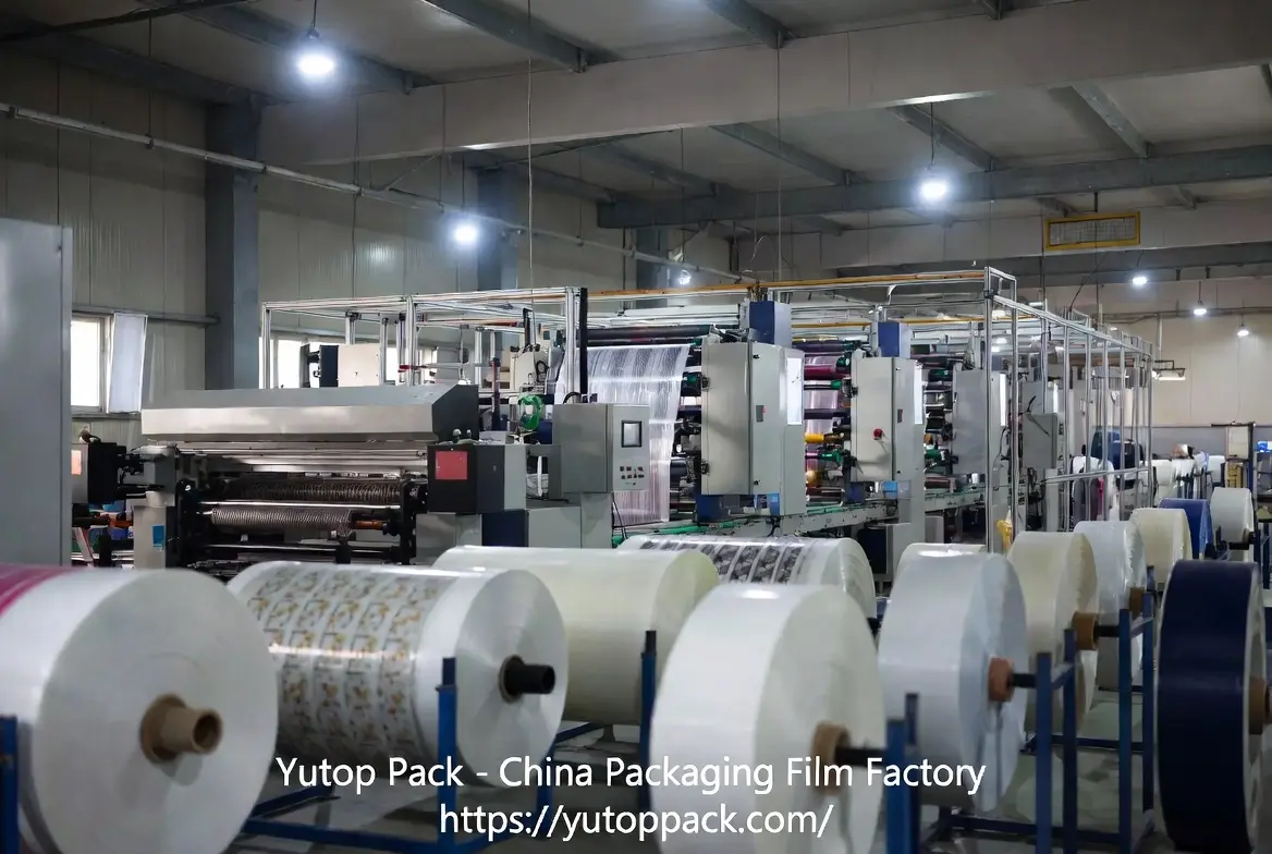 custom printed flexible packaging for premium retail or unbranded stock film for industrial packaging — Yutop Pack delivers to your exact specs, on time and within budget.
