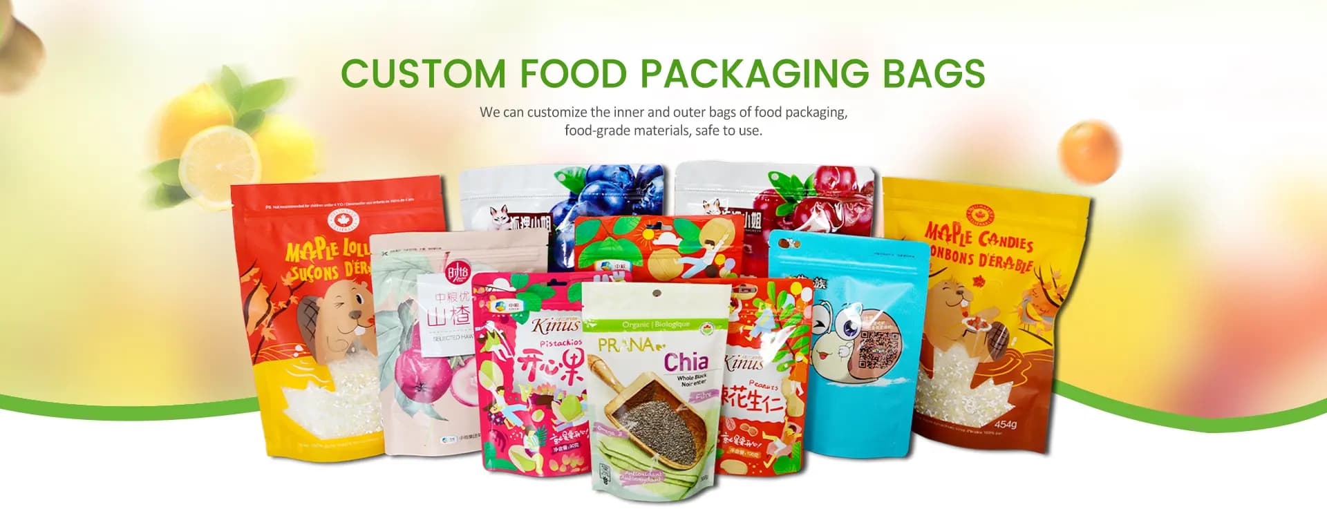 We also tailor bag styles to your food’s shape, weight, and usage needs—from three-side sealed and four-side sealed bags to stand-up pouches and zipper bags. Stand-up pouches add convenience, letting customers easily store and access contents on shelves, while zipper bags seal tightly after each use, locking in freshness for repeated snacking.